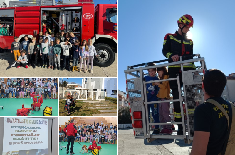 Ivona Slavica održala je edukaciju djece u području zaštite i spašavanja u skladu s programom Nacionalne akcije edukacije djece u području zaštite i spašavanja. Kroz prezentaciju djecu je upoznala s prirodnim i drugim nesrećama (požar, poplava, potres i sl.), njihovim posljedicama, ulogom žurnih službi u spašavanju osoba i imovine te s jedinstvenim brojem za žurne pozive 112. Djeca su također upoznata s načinom ponašanja u cilju otklanjanja mogućnosti za izazivanje požara i drugih neželjenih situacija, te načinu reagiranja u opasnim situacijama u kojem se mogu zateći tijekom svakodnevnice. U praktičnom dijelu edukacije članovi Hrvatske gorske službe spašavanja prezentirali su djeci svoju ulogu i aktivnosti u zaštiti i spašavanju ljudi i imovine. Posebnu pozornost djece izazvali su potražni psi Jenny i Tunja. Izlaskom na dvorište djeca su se upoznala s vozilima i opremom naših vatrogasaca.